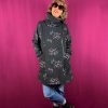 Abrigo de tejido Soft Shell largo medio, con cremallera lateral, de doble apertura, con super capucha y bolsillos delanteros. Lleva puños tejidos, en algodón 100%.
