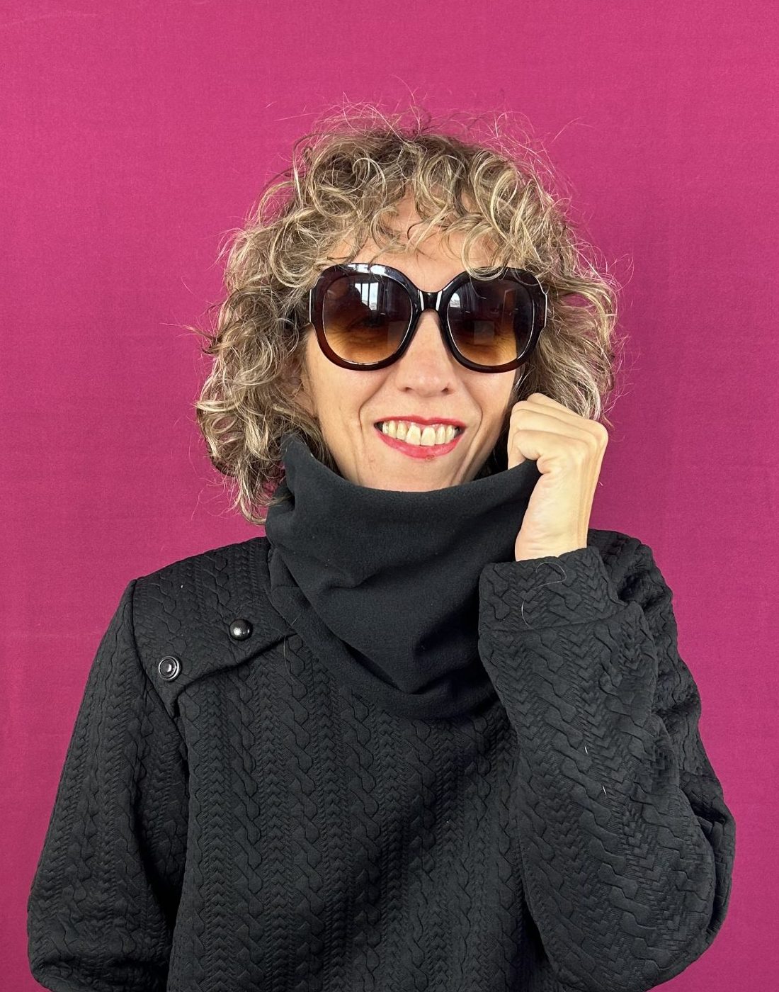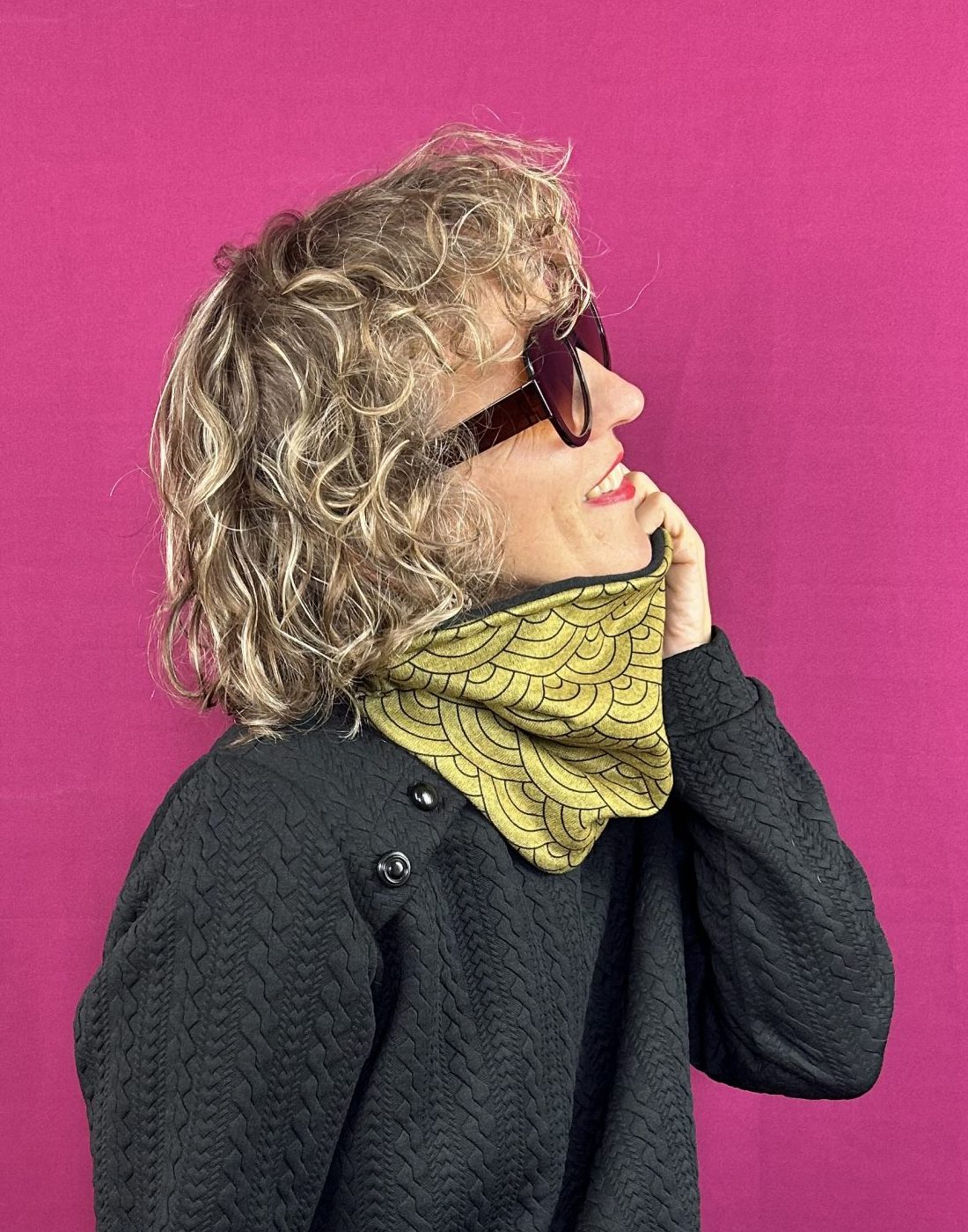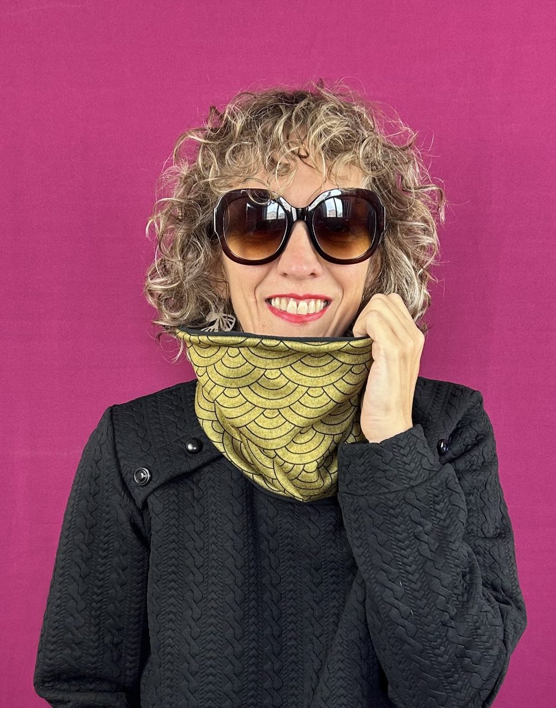 Cuello tipo buff, reversible. El tejido es súper suave cálido y agradable.