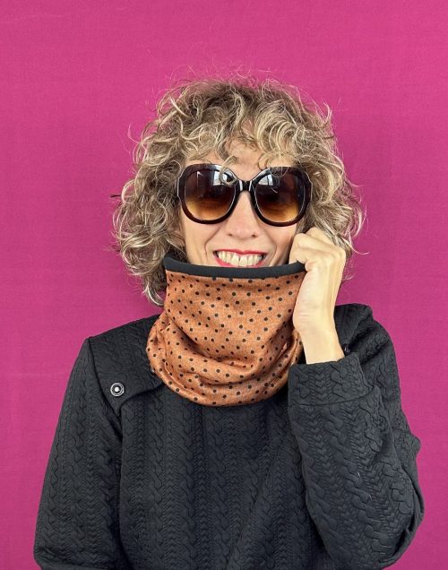 Cuello tipo buff, reversible. El tejido es súper suave cálido y agradable.
