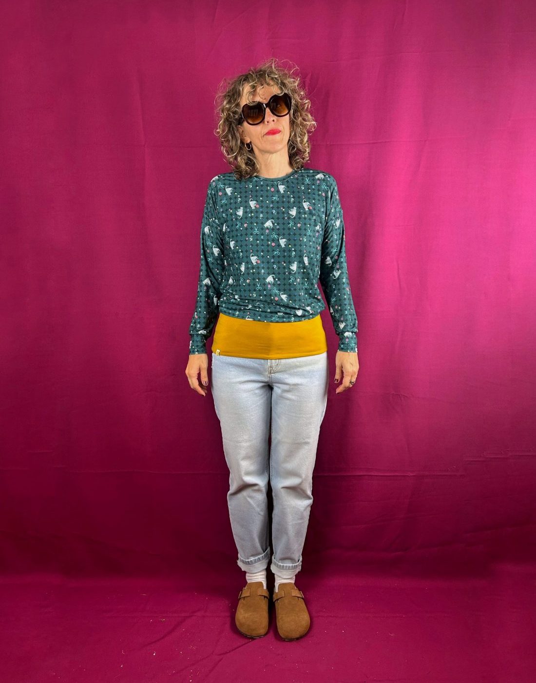 Este Haramaki esta hecho de dos capas de algodón orgánico, es reversible y puedes usarlo tanto dentro como fuera de las prendas.