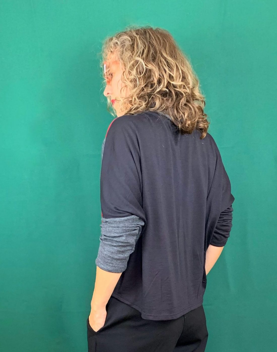 Jersey de cuello tortuga, de tejido de lanilla elástico. Tiene un tacto super suave y agradable. Patrón amplio con manga larga y recortes delanteros. Disponible en talla única. Tallas 36 a 44 aproximadamente.