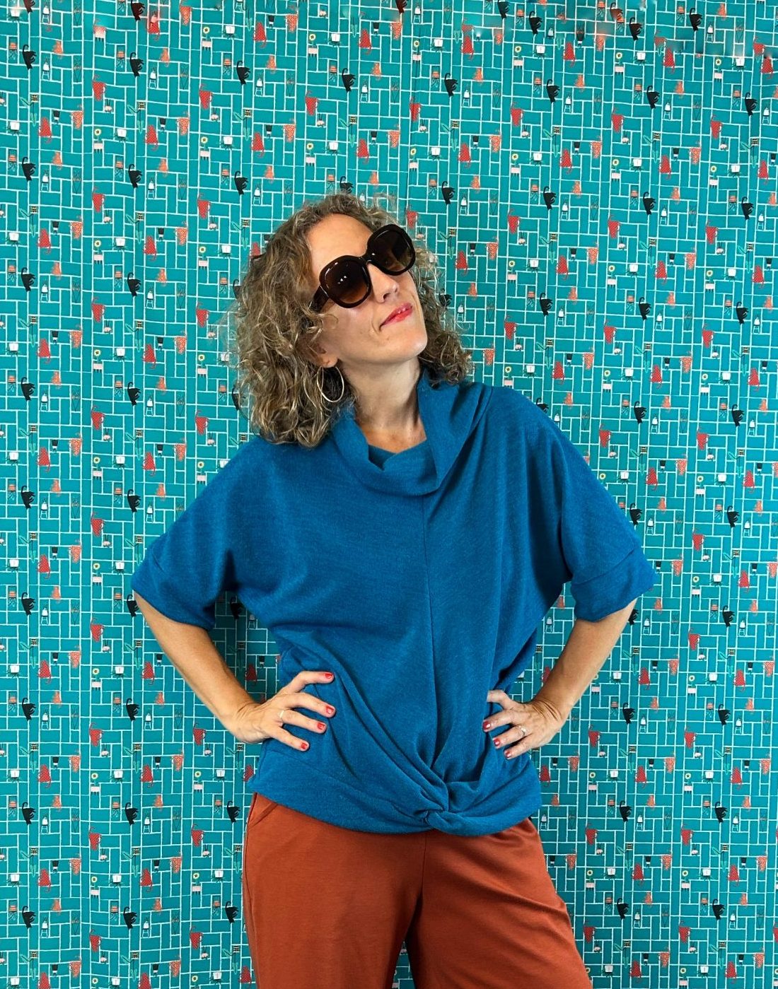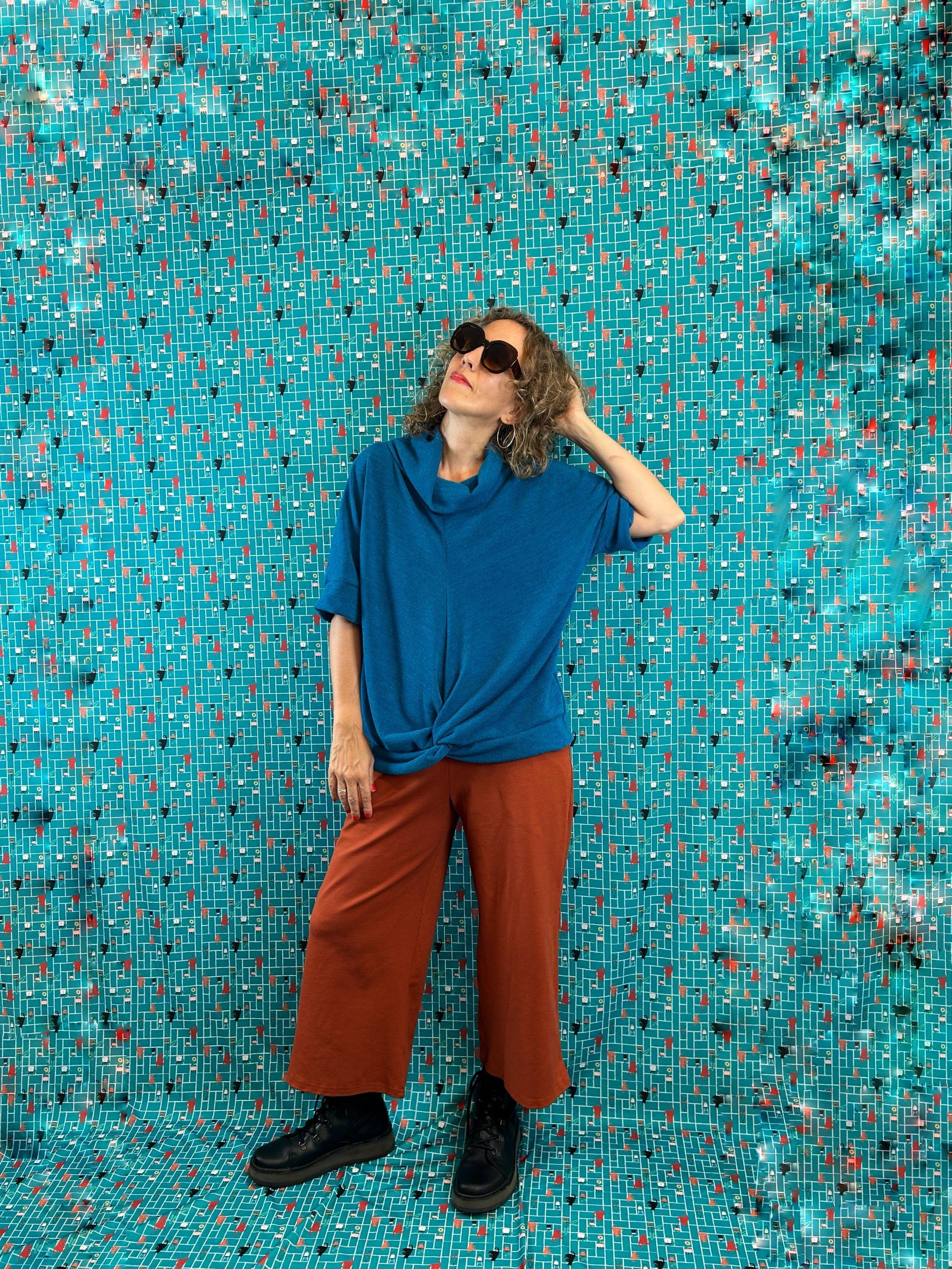 Jersey de cuello volcado, de tejido de punto de lanilla elástico. Tiene un tacto super suave y agradable. Patrón amplio con un detalle super bonito de nudo en la delantera. Puedes usarlo con una camiseta debajo de manga larga. Disponible en 2 tallas amplias.