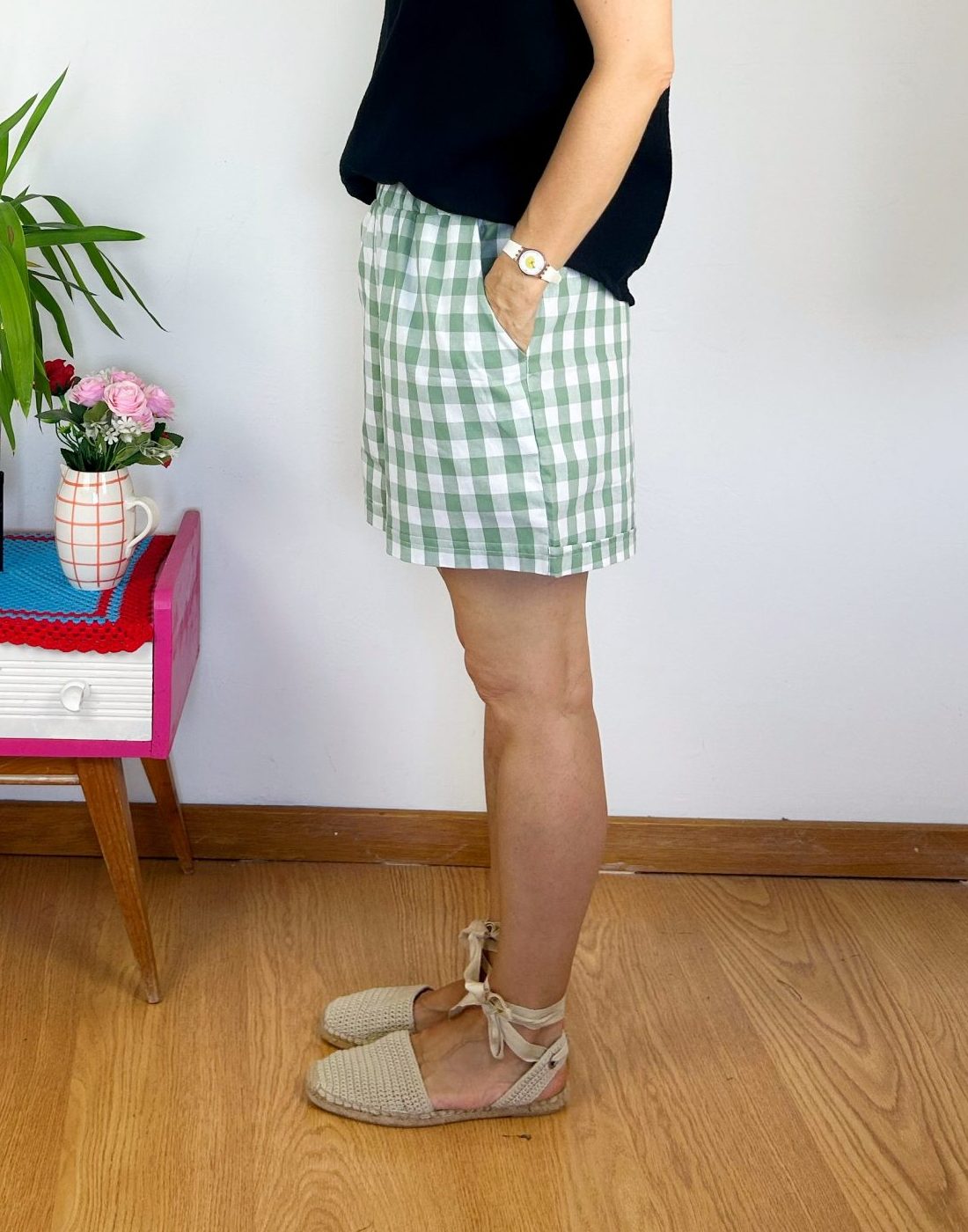 Patrón amplio, de pierna ancha, con bolsillos laterales. Tiene una textura super bonita, al tacto es muy suave y agradable.
