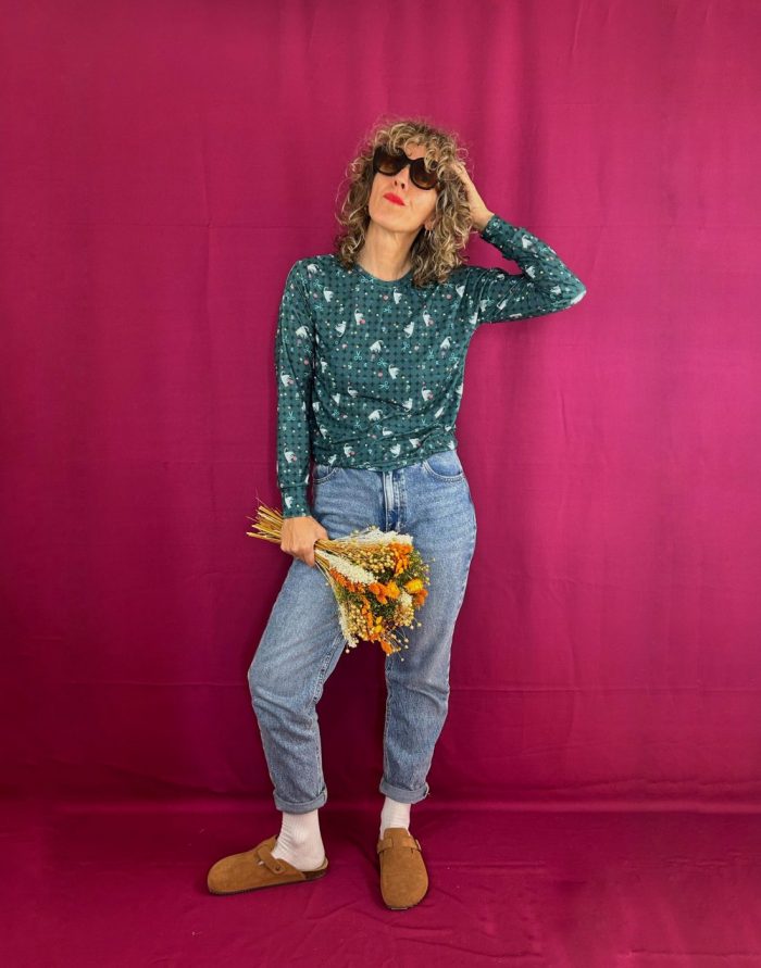 Puedes usarlo para camisetas, faldas, vestidos y pantalones. La prenda de la foto es a modo de ejemplo de lo que puedes hacer. Tu imaginación es el limite.