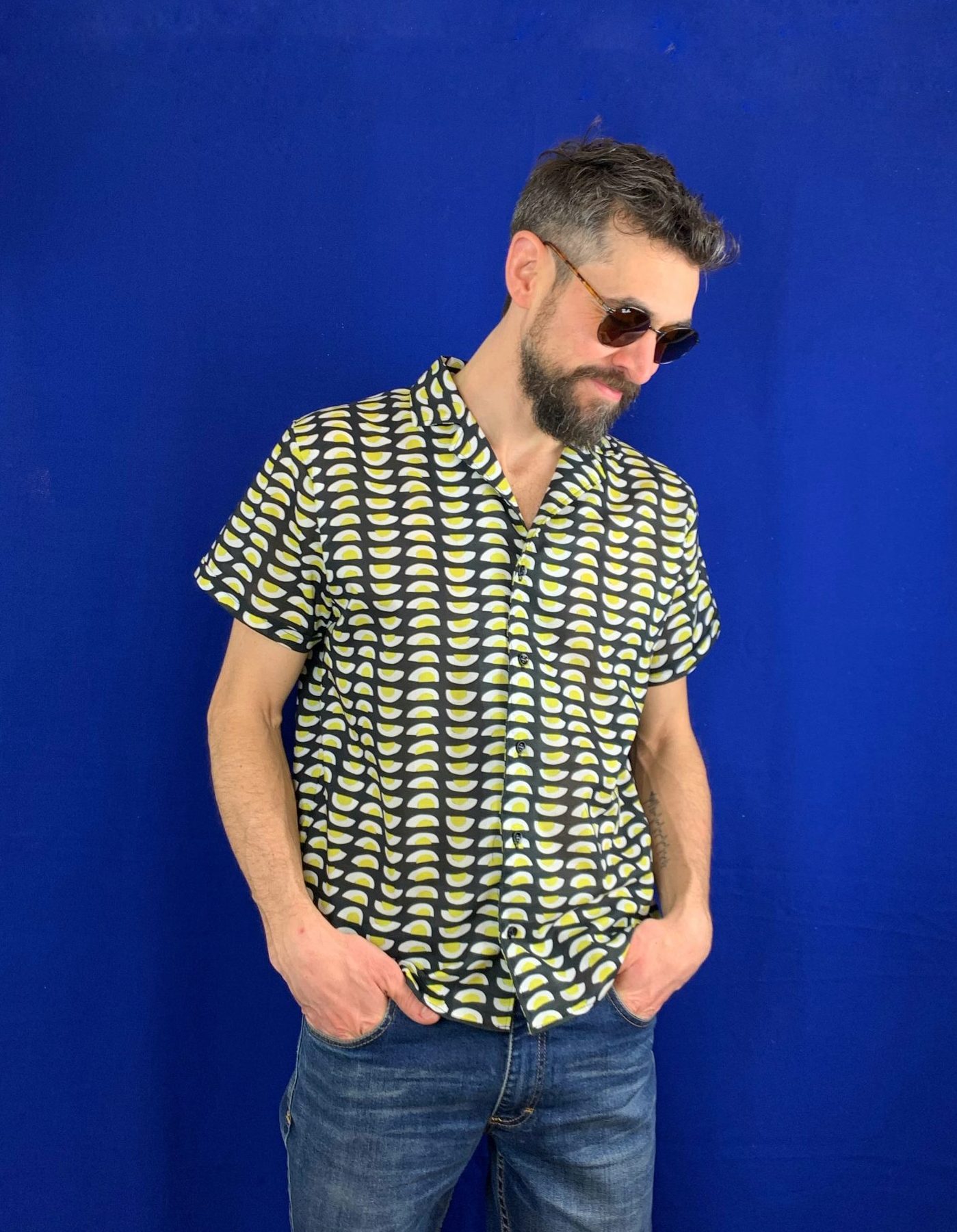 Camisa de Voile de Algodón, de corte recto, con manga corta y cuello en pico con una pequeña solapa. Tiene un tacto super fresco, suave y agradable. Patrón amplio, disponible en 4 tallas. Camisa Unisex. Llevamos la talla S en la foto.