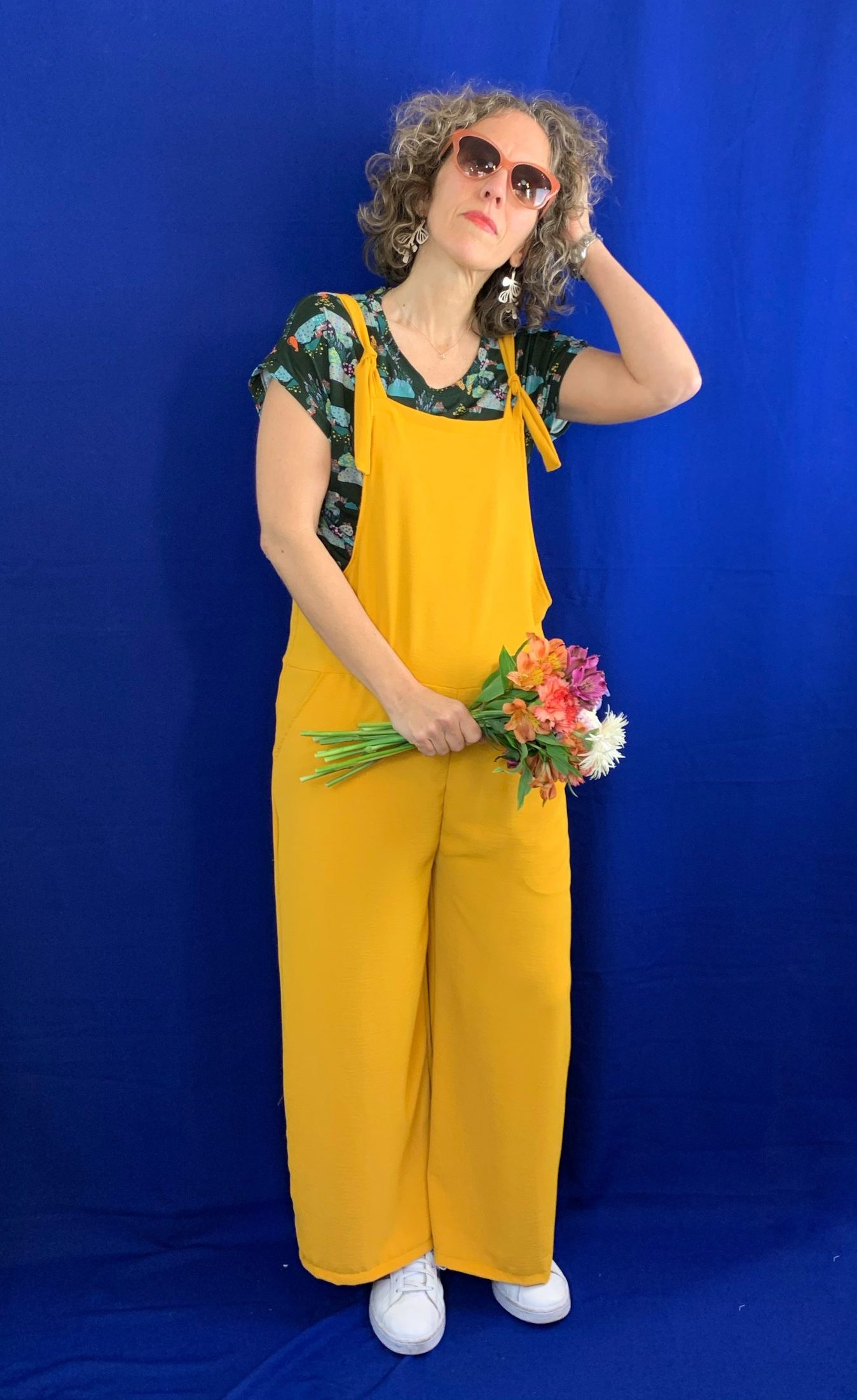Mono de pierna ancha, de tejido fluido y un poco elástico. Tiene un tacto super fresco, suave y agradable. Patrón amplio con bolsillos delanteros y tiras regulables. Disponible en 2 tallas amplias. En la foto llevo la talla S/M